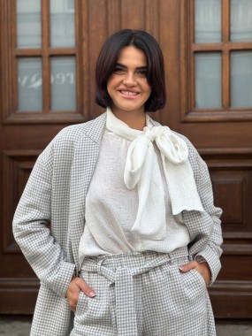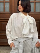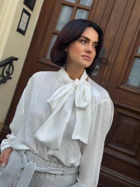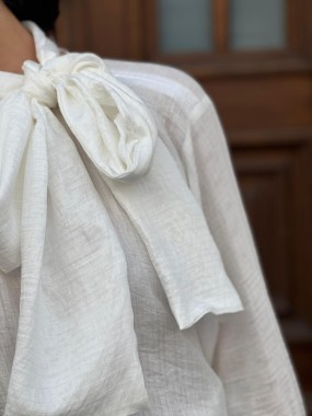 Elegancka bluzka, z mieszanki naturalnych tkanin w białym kolorze.