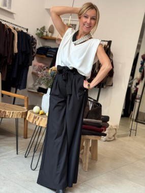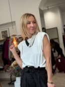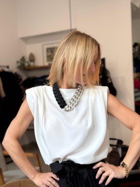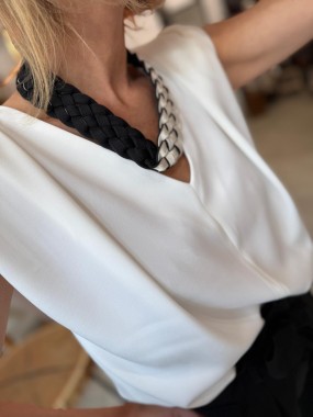 Elegancka damska bluzka, uszyta z mięsistej tkaniny w białym kolorze. Można ją nosić na dwa sposoby zamieniać tył z przodem.