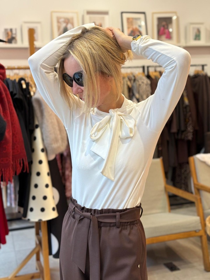 Dzianinowa, elastyczna damska bluzka w białym kolorze. Klasyka i baza do wielu stylizacji –