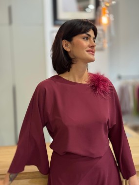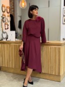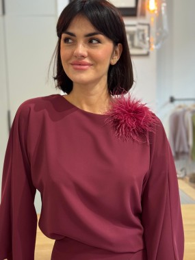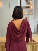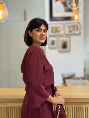 Elegancka i kobieca bluzka z lejącej tkaniny w bordowym kolorze .