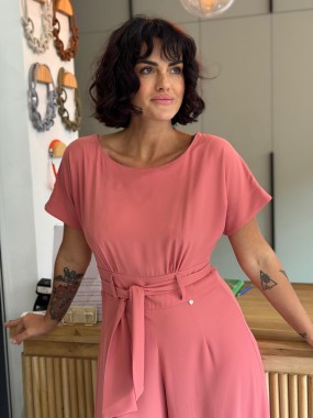 Kombinezon Fryne z mięsistej, lejącej się tkaniny w brzoskwiniowym kolorze.
