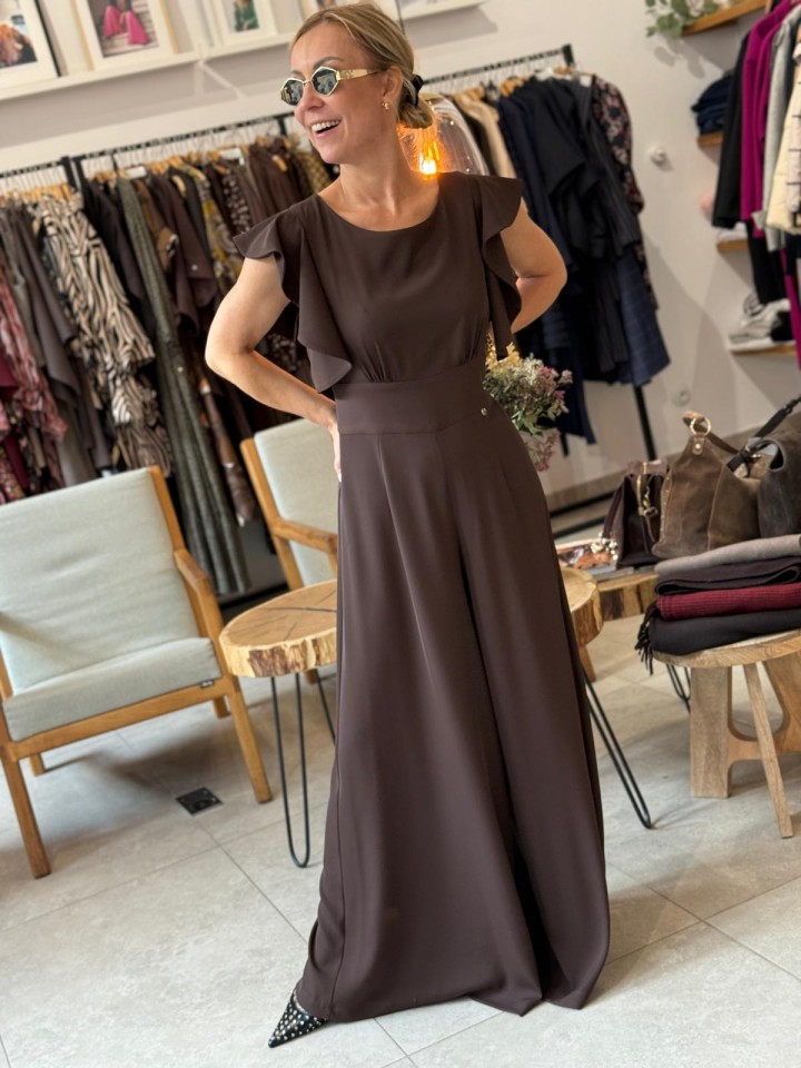 Kombinezon Chili z mięsistej, lejącej się tkaniny w brązowym odcieniu.