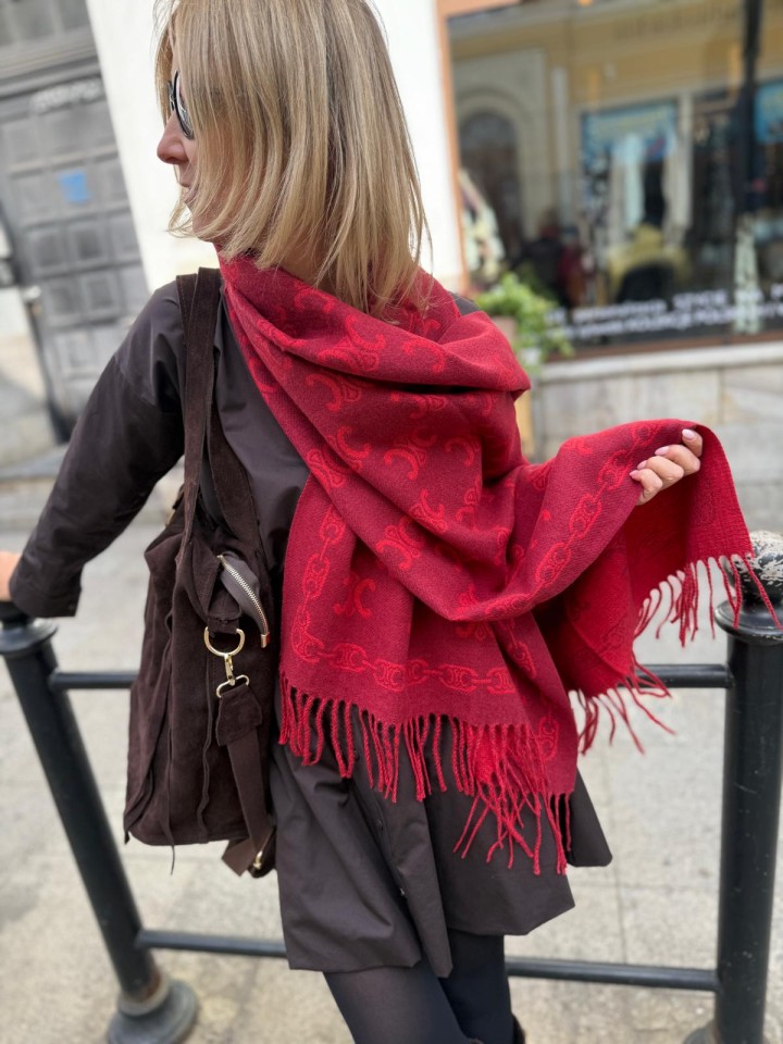 Aby uatrakcyjnić każdą naszą stylizację proponujemy Wam długi szal, z domieszką wełny. Doskonale nadaje się do płaszcza, lub kurtki. Krój prostokąta, miły w dotyku, wzór tłoczonego H w czerwonym kolorze.