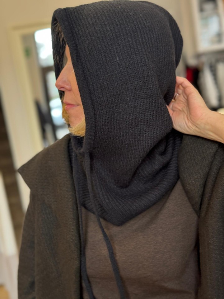 Aby uatrakcyjnić każdą naszą stylizację proponujemy Wam Komino-kaptur Balaclava Cashmere&Black. Doskonale nadaje się do płaszcza, lub kurtki. Miła w dotyku, z dodatekim kaszmiru w czarnym kolorze.