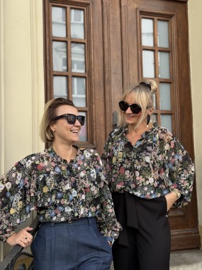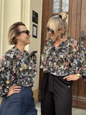 Oversizowa koszula, uszyta z szyfonu we wzór kwiatów. Świetnie wygląda zarówno do jeansów i spódnic.