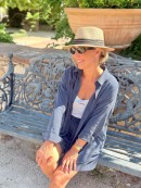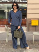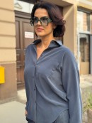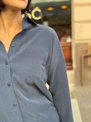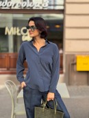 Damska koszula z włoskiej wysokogatunkowej tkaniny w niebieskim kolorze.