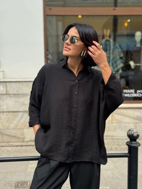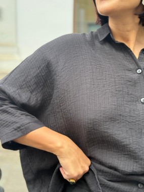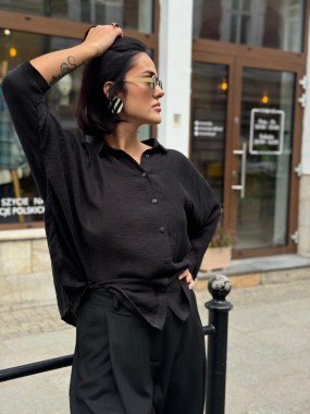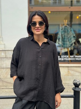 Koszula uszyta z mieszanki naturalnych tkanin w czarnym kolorze.