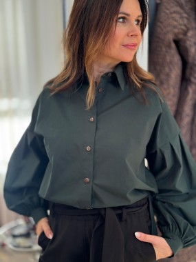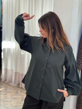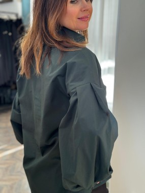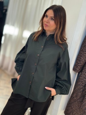 Damska koszula uszyta z bawełnianej tkaniny koszulowej w zielonym kolorze.