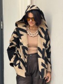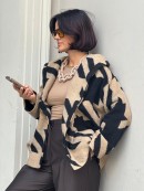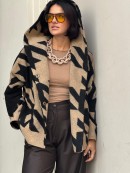 Krótka Kurtka Liwi Wool&Black na podszewce, uszyta z mięsistej wełny dziewiczej w camelowo-czarny wzór . Oversizowy fason, który idealnie sprawdzi się do eleganckiej stylizacji lub na codzienne wyjście do pracy.