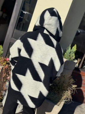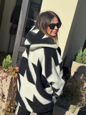 Krótka Kurtka Liwi Wool&Black na podszewce, uszyta z mięsistej wełny dziewiczej w biało-czarny wzór . Oversizowy fason, który idealnie sprawdzi się do eleganckiej stylizacji lub na codzienne wyjście do pracy.