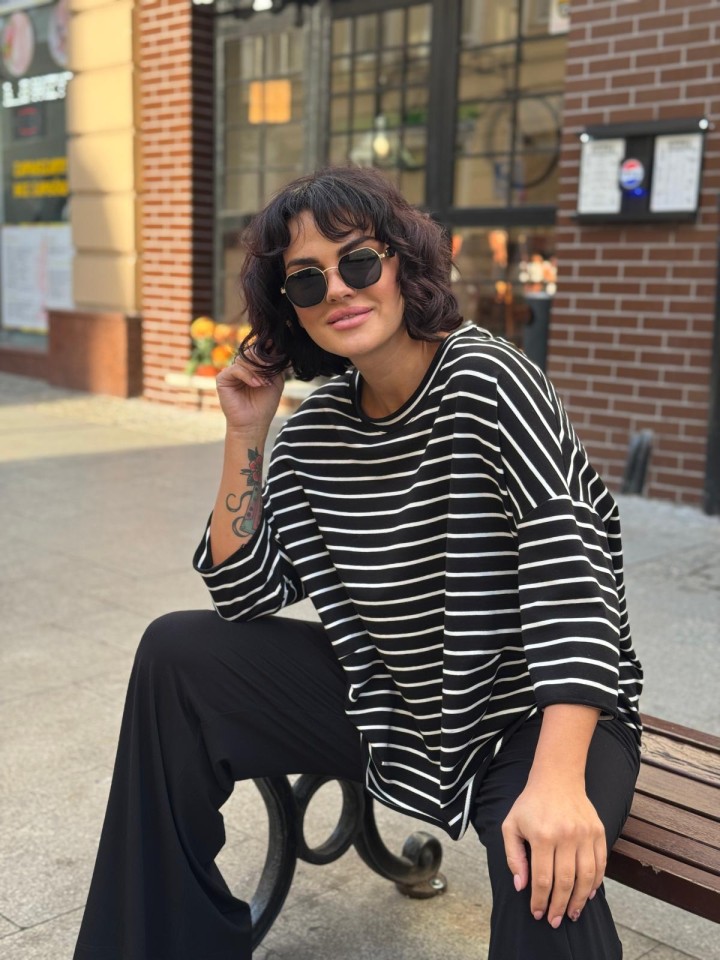 Damska bluza bawełniana w czarno-białe paski .