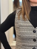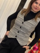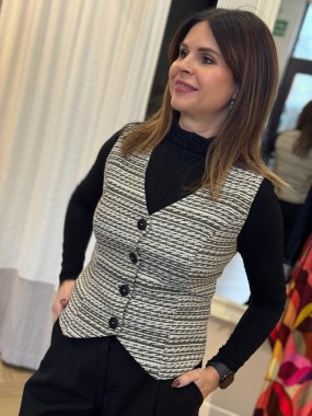 Taliowana kamizelka na podszewce, ekskluzywna tkanina z mięsistej wełny jagnięcej z prążkiem.