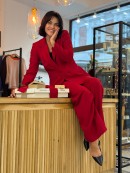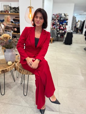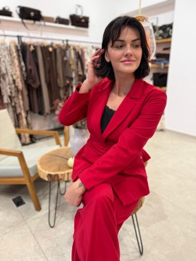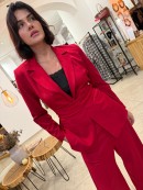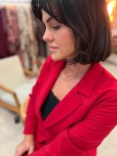 Damski żakiet o klasycznym kroju z tkaniny w czerwonym kolorze.