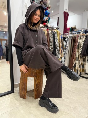 Idealny duet z Bluzą Polo Brown z tej samej tkaniny.