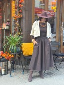 Fason wysmuklający figurę, dopasowana w talii, z tyłu gumka, z kieszeniami. Długość midi.