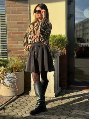 Mini spódniczka z koszulowej bawełnianej tkaniny w czarnym kolorze.