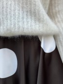 Efektowna Spódnica Leyla uszyta z mięsistej tkaniny z połyskiem we wzór grochów na czarnym tle.