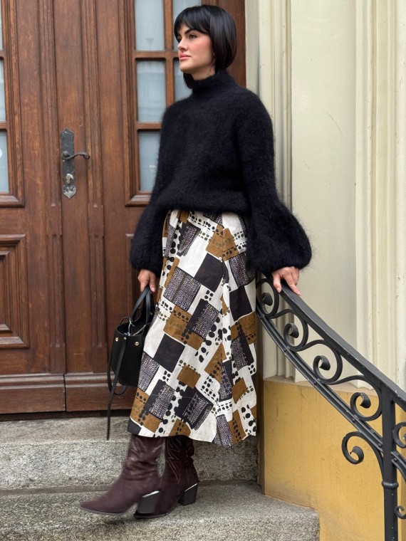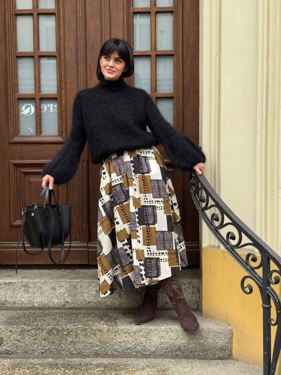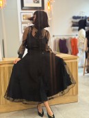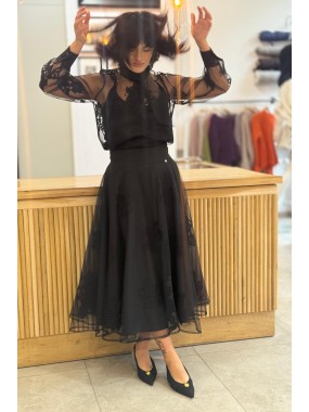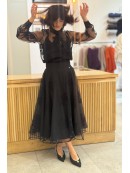 Efektowna Spódnica Leyla uszyta z mięsistej czarnej tkaniny , wierzchnia warstwa koronka.