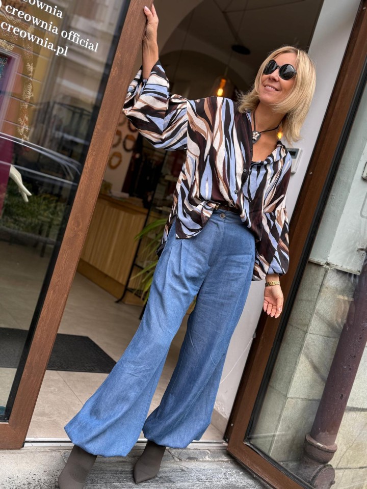 Spodnie damskie uszyte z mięsistej tkaniny jeansowego tencelu.