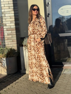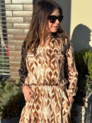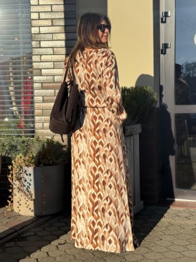 Maxi sukienka z włoskiej wiskozy w kolaż jesiennych barw .