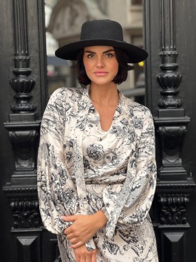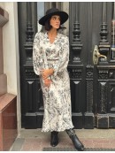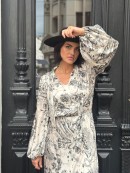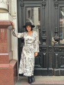 Midi sukienka, uszyta ze zwiewnej tkaniny z wiskozy w malowniczy wzór zodiaków.