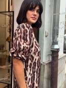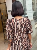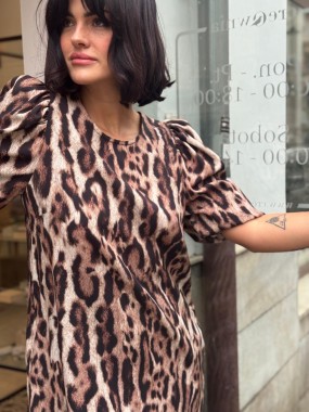 Mini sukienka w kształcie litery A, uszyta z tkaniny we wzór panterki.