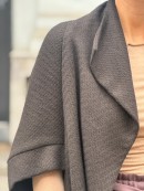 Bardzo efektowne wdzianko uszyte z wełnianej tkaniny w brązowym kolorze .